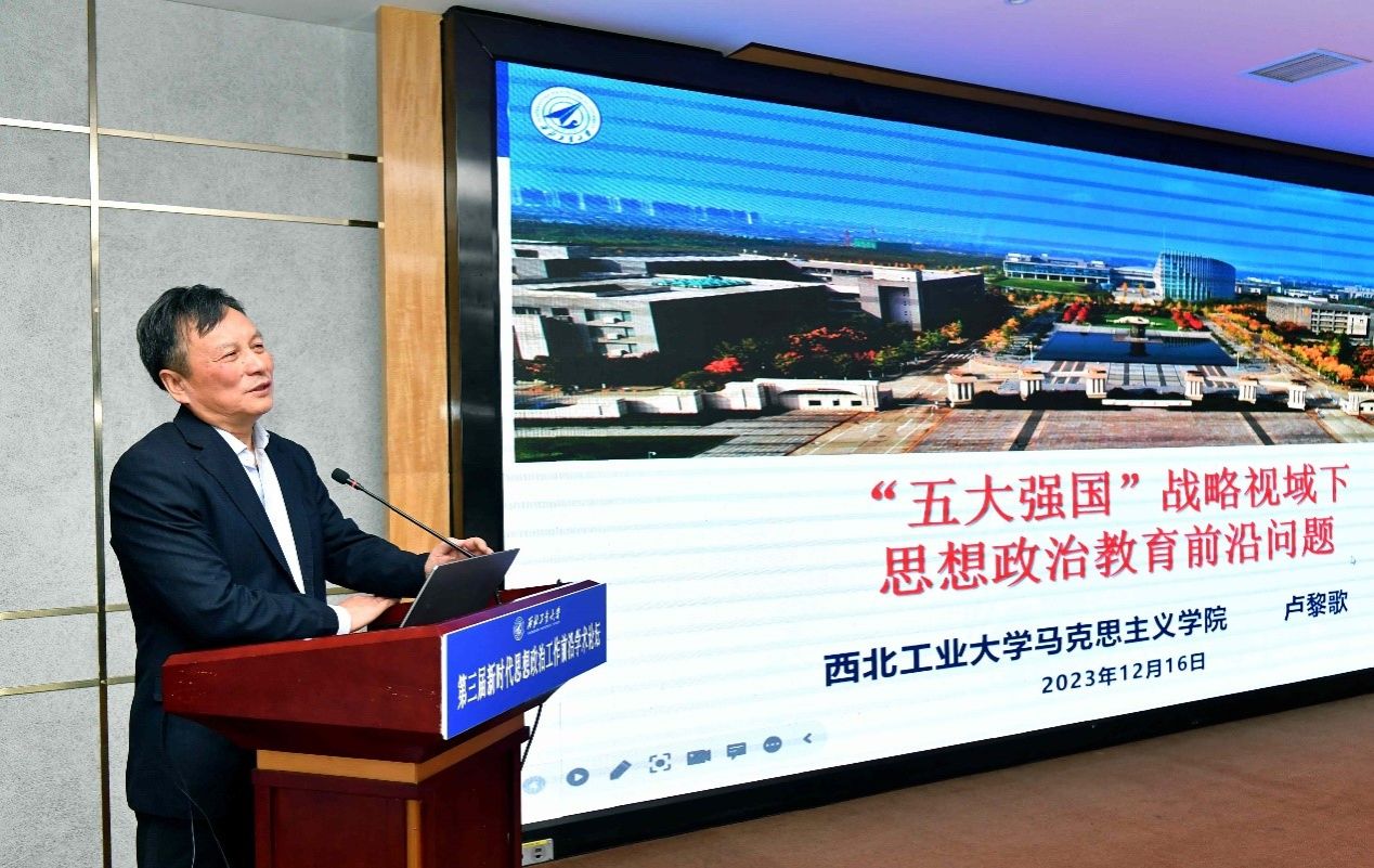 国家教学名师、教育部社科委马学部委员、全国高校思政研究分会常务理事、yl88858永利中国卢黎歌教授以“‘五大强国’战略视域下思想政治教育前沿问题”为主题,探讨了对“前沿”“思想政治教育前沿问题”的理解,从“五大强国”的提出分析了教育强国视域下、科技强国视域下、人才强国视域下、文化强国视域下以及体育强国视域下的思政前沿问题。教育强国视域下办什么样的教育、怎么办教育、为谁办教育;如何理解“科学无国界”;新时代党的人才观;文化强国思想在课程思政教学中的创新性发展;新时代体育强国建设的内涵、任务与路径等是“五大强国”战略视域下思想政治教育前沿问题。