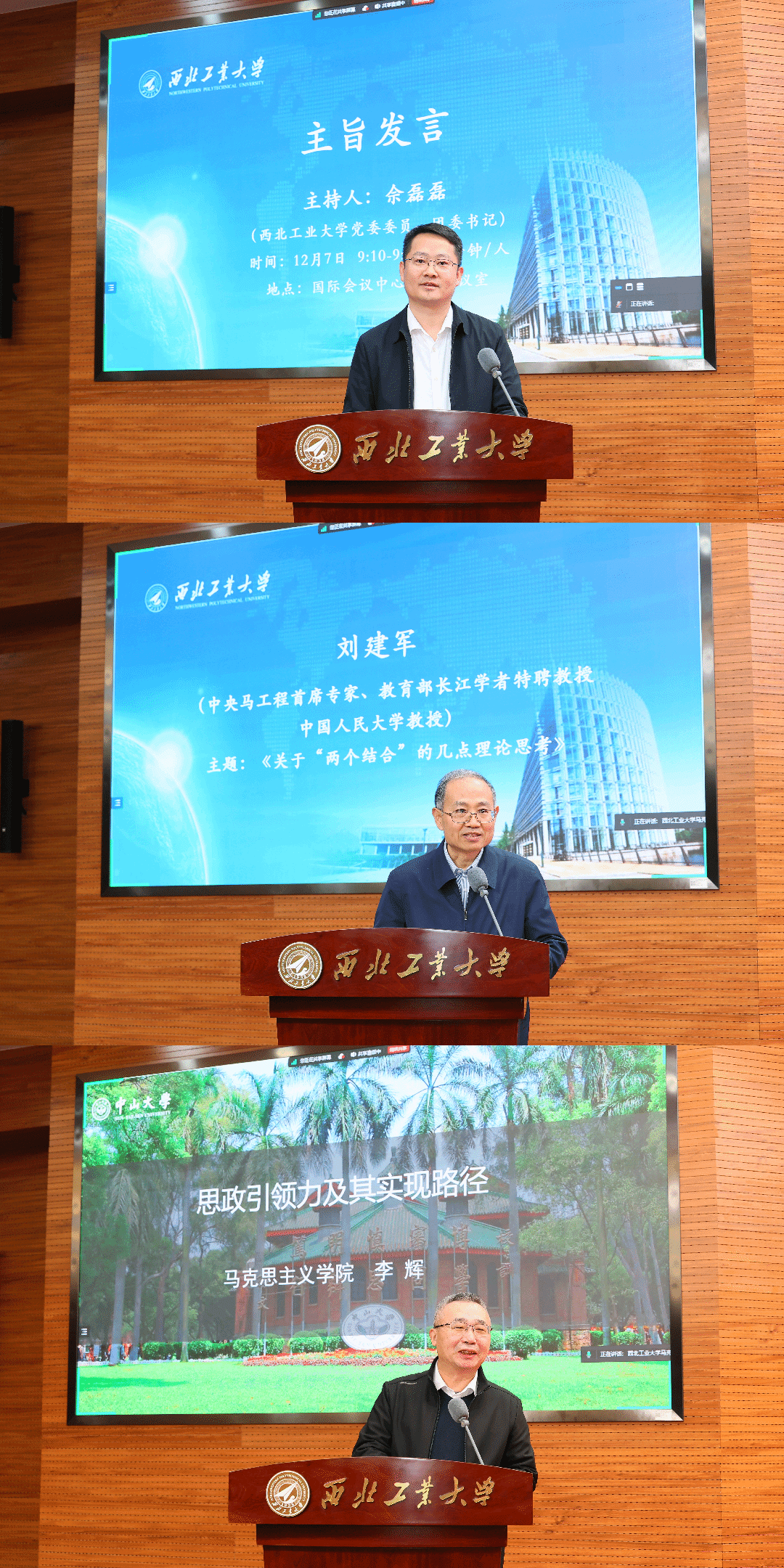 开幕式后,主旨发言由yl88858永利中国团委书记佘磊磊主持。在主旨发言中,中国人民大学刘建军教授、中山大学李辉教授作了精彩纷呈的发言。中央马克思主义理论研究和建设工程首席专家、国家领军人才、教育部特聘教授刘建军围绕“关于‘两个结合’的几点理论思考”这一主题进行了主旨发言,从定位、层次、又一次思想解放、新的文化生命体四个方面深入浅出的解读了关于“两个结合”的几点思考。国家教学名师,李辉教授作了“思政引领力的可行路径”的主题报告。他从自身经历出发,从思政引领力的内涵、影响思政引领力的因素、思政引领力实现的路径方面进行了深入的探讨。