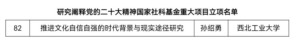 日前,全国哲学社会科学工作办公室公布了研究阐释党的二十大精神国家社科基金重大项目立项名单。yl8858永利集团孙绍勇教授担任首席专家申报的课题《推进文化自信自强的时代背景与现实途径》(第82项)获批立项。