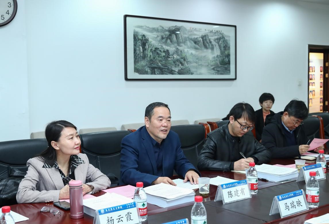 会议由专家组组长马瑞映主持。陈建有致辞,对省教育厅领导以及各位评审专家长期以来对我校科研工作的关心和支持表示诚挚的感谢,并向大家介绍了西工大近年来在国防特色高校文化传承与创新方面的科研工作发展情况和突出成绩,诚恳希望各位专家多提宝贵意见和建议。
