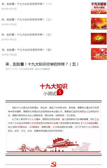 yl8858永利集团党委共有学生党员共146人,其中正式党员114人;从本科到硕士、博士,采取纵横结合的方式共成立12个学生党支部。在党的十九大精神传达学习工作中,学工组首先按照校党委的部署和学院的要求,分全体学生和学生党员两个层面开展学习,通过年级、班级、党支部、团支部、学生会等五种载体,开展全院学生集体学习和宣讲3场,各年级学习研讨6次,专题学习班会24次,党支部专题学习会和支部书记讲党课12场次,学院教师到入党积极分子、预备党员培训班进行党课送讲4场。学院领导班子成员、思政课教师、研究生导师、辅导员、班主任等多管齐下、当好表率,带领学生一起学、指导学生深入学、督促学生扎实学,实现了线下学习的全员覆盖和多重覆盖。同时,学院微信平台除常态化推送党的十九大精神学习材料、辅导报告等内容外,还专门开辟“周末党员之声”栏目,分享学生党员学原著的动态和悟原理的体会。近期,学生党员又自主开发了“学习答题刮刮看”栏目,分5期推出了党的十九大精神100题,为学生党员利用碎片化时间开展理论学习提供支撑。