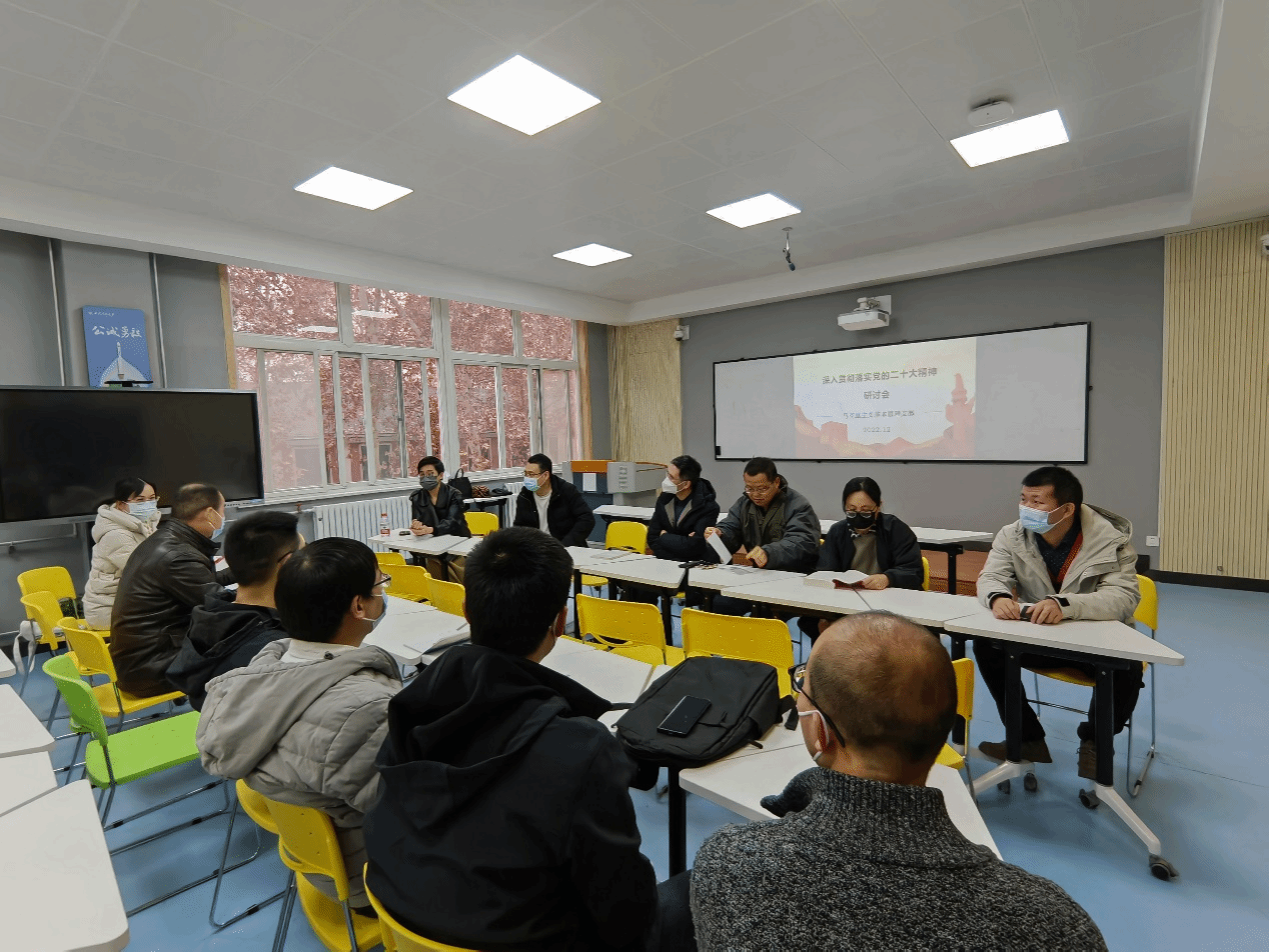 随后,与会党员围绕如何将党的二十大精神有机融入日常科研、教学和宣讲等工作展开充分讨论。丁社教同志根据近期党的二十大精神宣讲工作要求,阐述了“过去五年工作和新时代十年伟大变革”的主要内容及其战略意义。张云龙同志基于自身多年的科研积累,分享了如何将关于中国式现代化、人类文明新形态、科教兴国战略等理念,进行经验性总结和学理化提升的相关学术经验。贺苗同志结合原理课教学设计、专题讲授、案例应用以及思政课教师素质提升等,讲述了党的二十大精神的重要引领作用。其他各位党员同志从不同层面、不同角度进行了深入交流探讨。