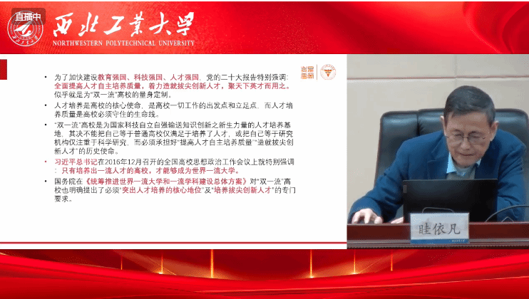 4月14日下午,按照学校党委组织部的统一安排,yl8858永利集团组织教工党支部书记、机关党支部党员同志在学院楼208会议室集中观看学习贯彻习近平新时代中国特色社会主义思想和党的二十大精神报告会。报告会由学校党委副书记、纪委书记吕卫东主持。浙江大学高教研究所教授眭依凡主讲。