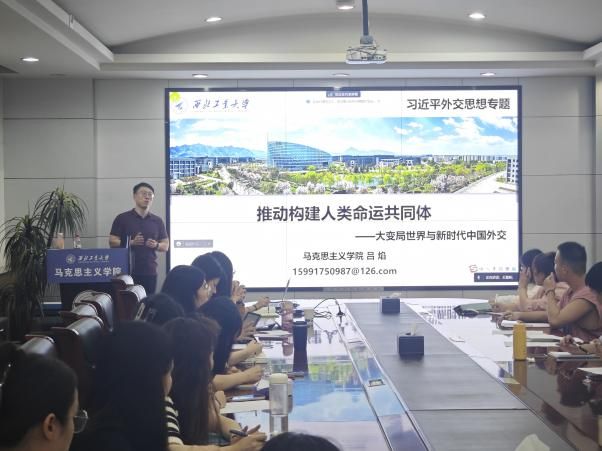 9月13日,吕焰老师以“推动构建人类命运共同体”为题,从一些西方国家当前在国际事务中的“去风险”论调到面对百年未有之大变局的世界时的中国方案,面对全球化带来的机遇与挑战,中国共产党提出构建人类命运共同体的理念。中国提出的持久和平、普遍安全、共同繁荣、开放包容、清洁美丽的人类命运共同体的新理念,旨在促进国际关系民主化,推动全球治理体系变革,加强国际合作,共同应对全球性挑战。