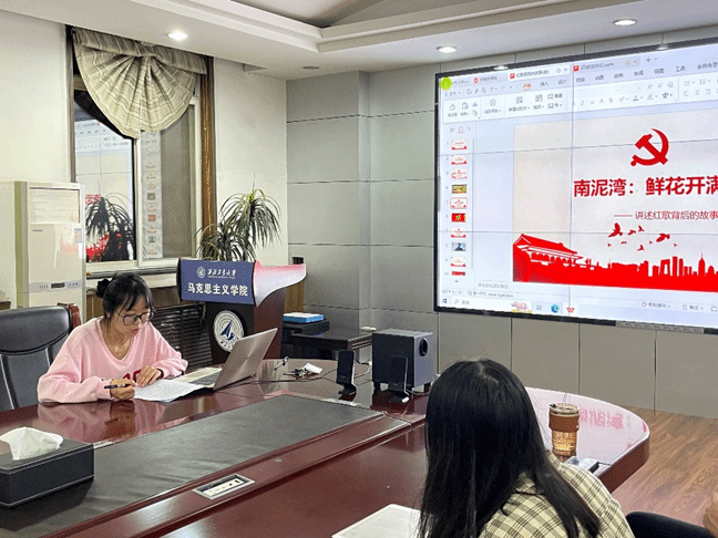 为深入开展学习贯彻习近平新时代中国特色社会主义思想主题教育,创新形式推进党史学习教育,积极推进我院“一院一品”学生思政精品项目培育创建工作,9月22日晚七点半,yl8858永利集团马克思主义基本原理系硕士生党支部、马克思主义中国化研究系硕士生党支部、中国近现代史基本问题研究系硕士生党支部、思想政治教育系硕士生党支部和博士生第三党支部于学院楼208会议室联合开展“嘹亮红歌映党史 讲述红歌背后的故事”主题党日活动,一起唱红歌、讲党史、颂党恩。会议由马克思主义基本原理系硕士生党支部委员崔颖文主持。