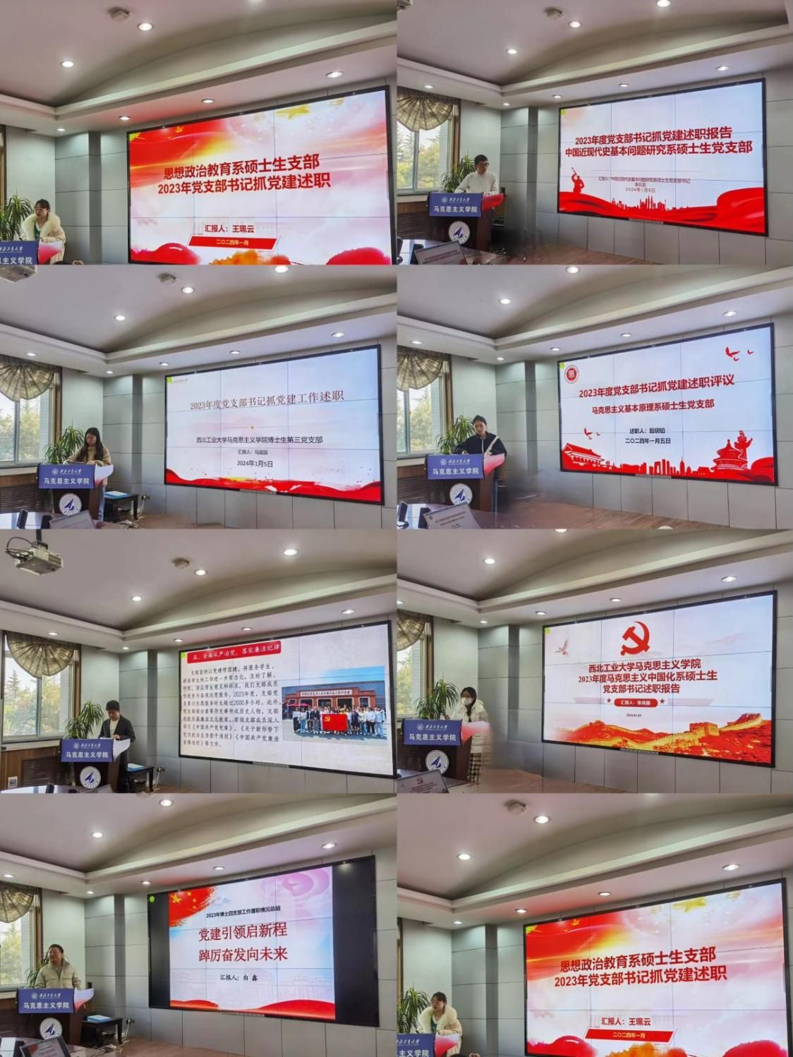随后,学院教工党支部书记鲁杰、曹瑜、陈诚平、马新蕊、宫淑燕、郭雅楠,学生党支部书记李世文、李水、马园园、白鑫、殷玥铂、张肖丽、王珮云、李云龙等14位同志依次开展现场述职,重点围绕深入学习贯彻习近平新时代中国特色社会主义思想和党的二十大精神、落实基层党建工作重点内容、强化党支部政治功能和组织功能、做好师生思想政治教育、落实全面从严治党要求、我为群众办实事的情况、工作中存在的问题和不足以及下一步工作考虑和计划等方面展开,用具体事例和数据支撑,客观、详实地展示党支部一年来取得的成绩和存在的问题,全面总结了2023年度党支部开展的工作情况。同时,党委领导班子依次对联系的党支部书记述职情况进行点评,既提出肯定也指出不足,现场评委根据各党支部书记述职情况进行打分。