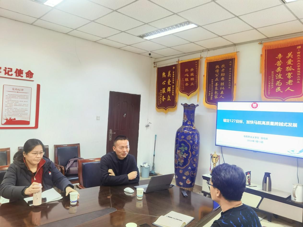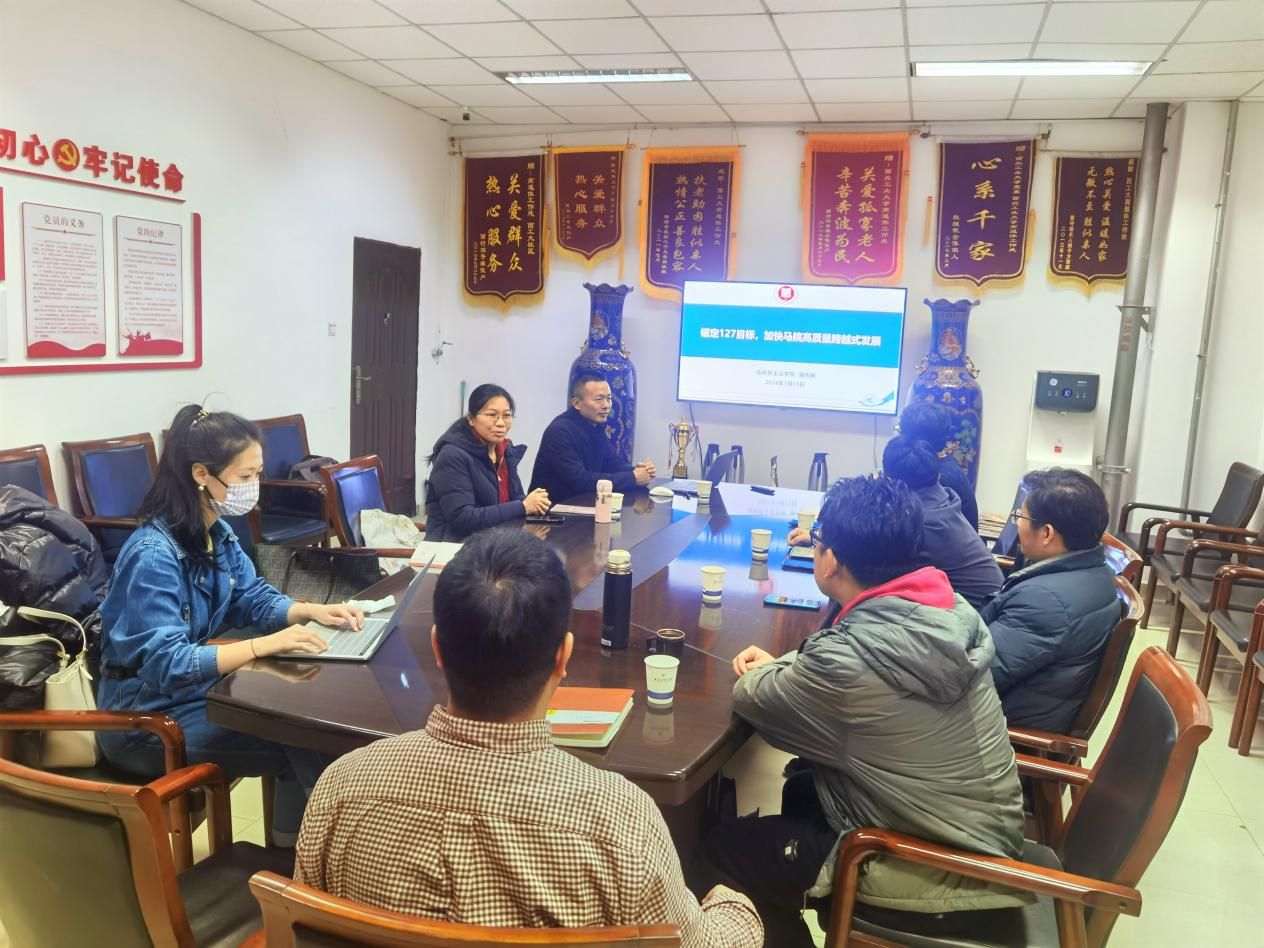 2024新年伊始,学院党委书记蒲传新以《锚定“127”发展目标,加快yl8858永利集团高质量跨越式发展》为主题,为德法与形势政策系党支部讲授新年第一堂专题党课,会议由系支部书记宫淑燕同志主持。