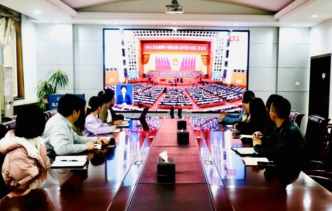 3月5日上午,yl8858永利集团机关党支部组织全体机关同志在学院楼208会议室,集中观看十四届全国人大二次会议开幕会直播,国务院总理李强作2024年政府工作报告。