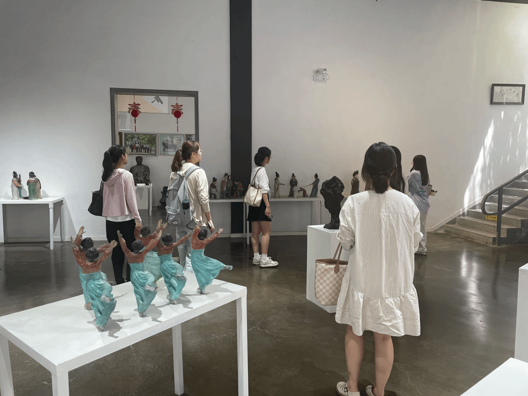 园区建立在上世纪五十年代的工业区基础之上,园中陈列的火车头和绿皮车厢令人回想起当时工业兴旺、火车轰鸣的场景。如今,在艺术家张金平的整合开发下,当年的工业园区已经变成了一个以雕塑和匾额为主要展品的艺术馆。师生们首先参观了展览馆一楼的雕塑馆,馆中汇集了各大名家的著名雕塑作品。二楼则收藏展出了四五百件关中地区历代匾额。在讲解员的讲解下,大家既从艺术的角度感受了书法之美,也从文化的深度感受了传统的民俗与文化。