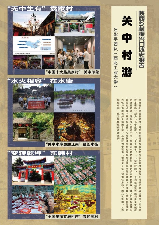 2022年暑假,yl8858永利集团汪永平教授带领学生社会实践团队以“陕西乡村振兴口述史”为主题,深入考察了陕西乡村振兴的成功案例:礼泉县袁家村、周至县水街和西安市鄠邑区的东韩村。作为我校创新第二课堂思政育人模式的立项实践项目,受校党委学生工作部支持,活动取得了良好成效,既做到了大思政育人;又做到了宣传乡镇政府、关中文化和西工大形象的作用。该项目可以称得上是立体化、生动化和艺术化的思想政治教育实践课。其表现是:
