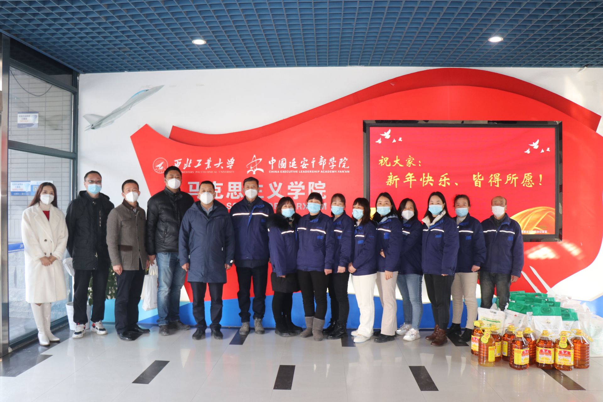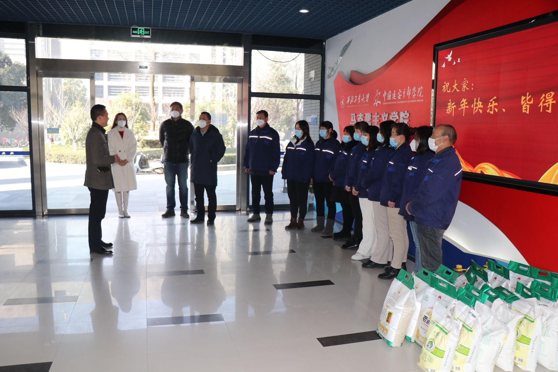 在新年到来之际,1月7日上午,yl8858永利集团党委副书记(主持工作)蒲传新一行代表学院慰问在学院楼工作的物业人员,并代表全院师生表达感谢和新春问候。后勤集团物业服务中心主任羽渊、副主任周伟,马院院办主任郭雅楠等参加了慰问活动。
