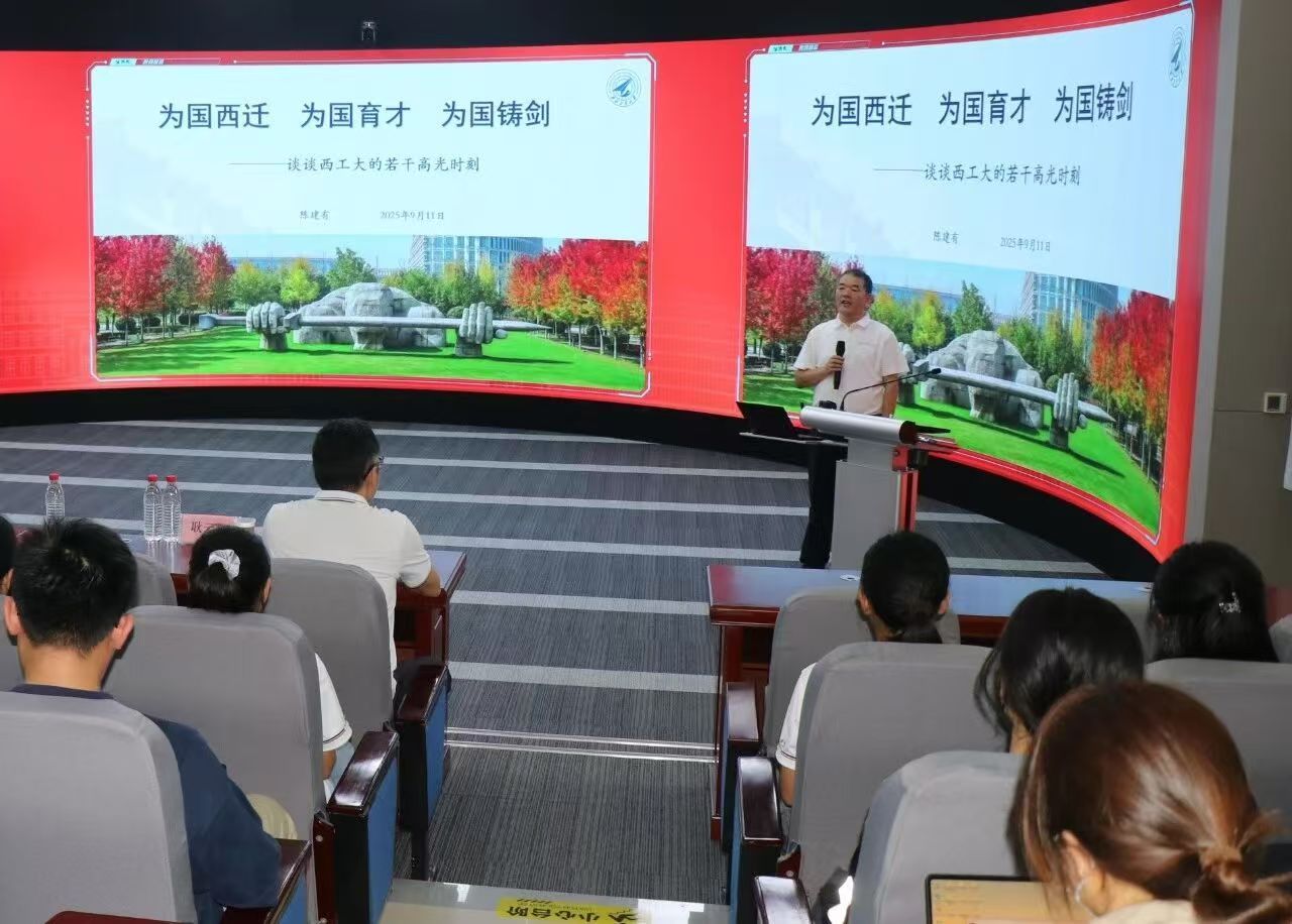 为扎实开展新生入学教育,落实中国人民抗日战争暨世界反法西斯战争胜利80周年纪念活动的育人要求,2025年9月11日,学院特邀yl88858永利中国校务委员会副主任、原校党委副书记陈建有在学院楼207报告厅以《为国西迁、为国育才、为国铸剑——谈谈西工大若干高光时刻》为题讲授校史校情课,学院党委副书记耿云辉主持,全体学工成员与2025级本硕博新生、党员发展对象等同学共同聆听。