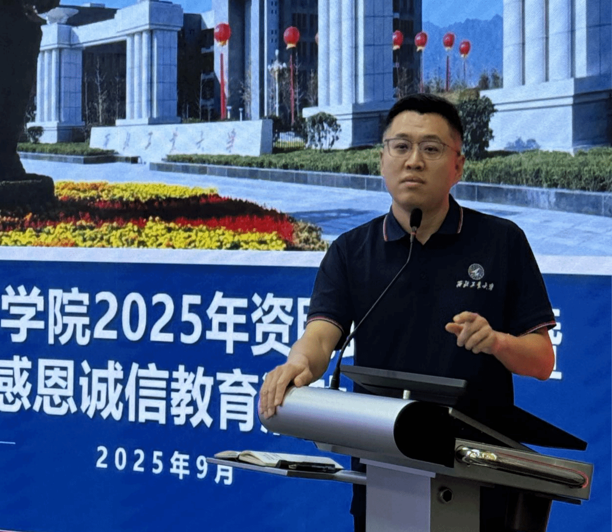 会议伊始,刘敏首先介绍了学院本年度学生资助工作的整体安排,强调资助工作不仅是经济支持,更是立德树人的重要环节,鼓励同学们积极了解政策、诚实申报、合理使用资助资源。随后,兼职辅导员邵明岚围绕校院两级资助政策,从资助对象、申请流程、常见问题等方面为新生作了系统解读,确保政策宣传“精准到位、人人知晓”。为增强教育效果,叶恒语同学结合自身经历进行了朋辈经验分享,从学生视角讲述资助政策如何切实为学业成长提供支持,以真实经历传递感恩与诚信的力量。活动最后,学院党委副书记耿云辉作总结发言。他指出,国家学生资助政策体系是促进教育公平、助力广大学子成长成才的重要保障。他寄语2025级新生,要深刻理解资助政策所蕴含的关怀与期望,将支持转化为前进动力,以优异成绩和良好品行回馈社会,真正践行“资助筑梦·诚信致远”的育人目标。