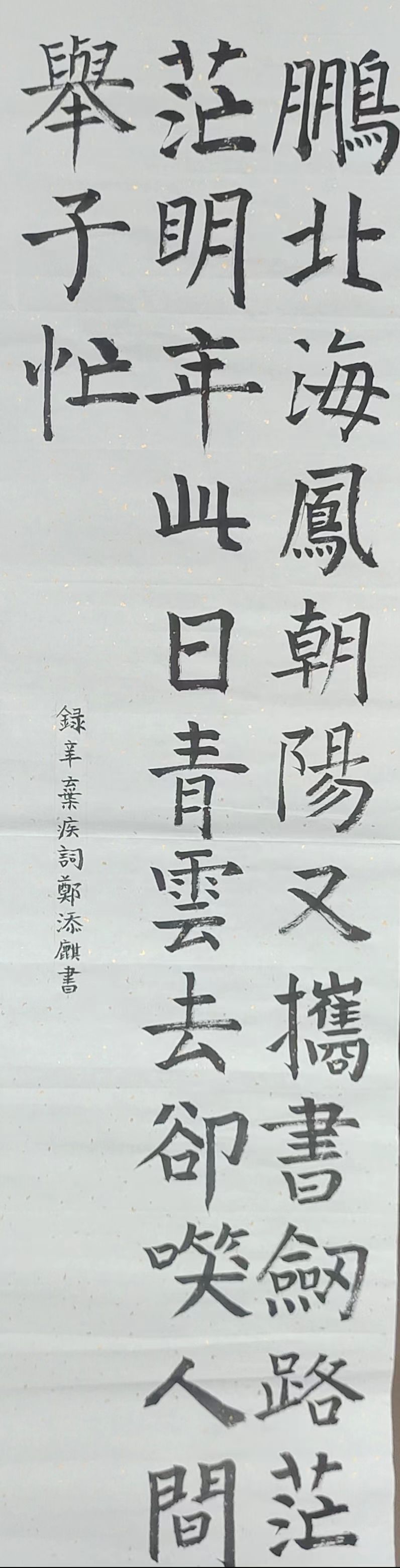 高红波老师从内容主题、笔法字型、章法布局等专业视角对作品逐一进行评审,并给出了相应的指导意见。其中郑添麒同学的作品整体布局恰当合理,结字规范,可见唐楷意蕴明显,但在某些笔法上干湿留白尚有待提高;杨京翰同学的作品笔法老道,对书体有自己的理解,有特色,可见古意,如果在布局留白互让、变化、讲究统一,则更上一层;王贝琳同学的作品整体有美感,汉字之间交相呼应、流畅衔接,现代和传统的关系处理融洽,如果在布局留白上轻重变化,处理更匀称些效果更佳等等。