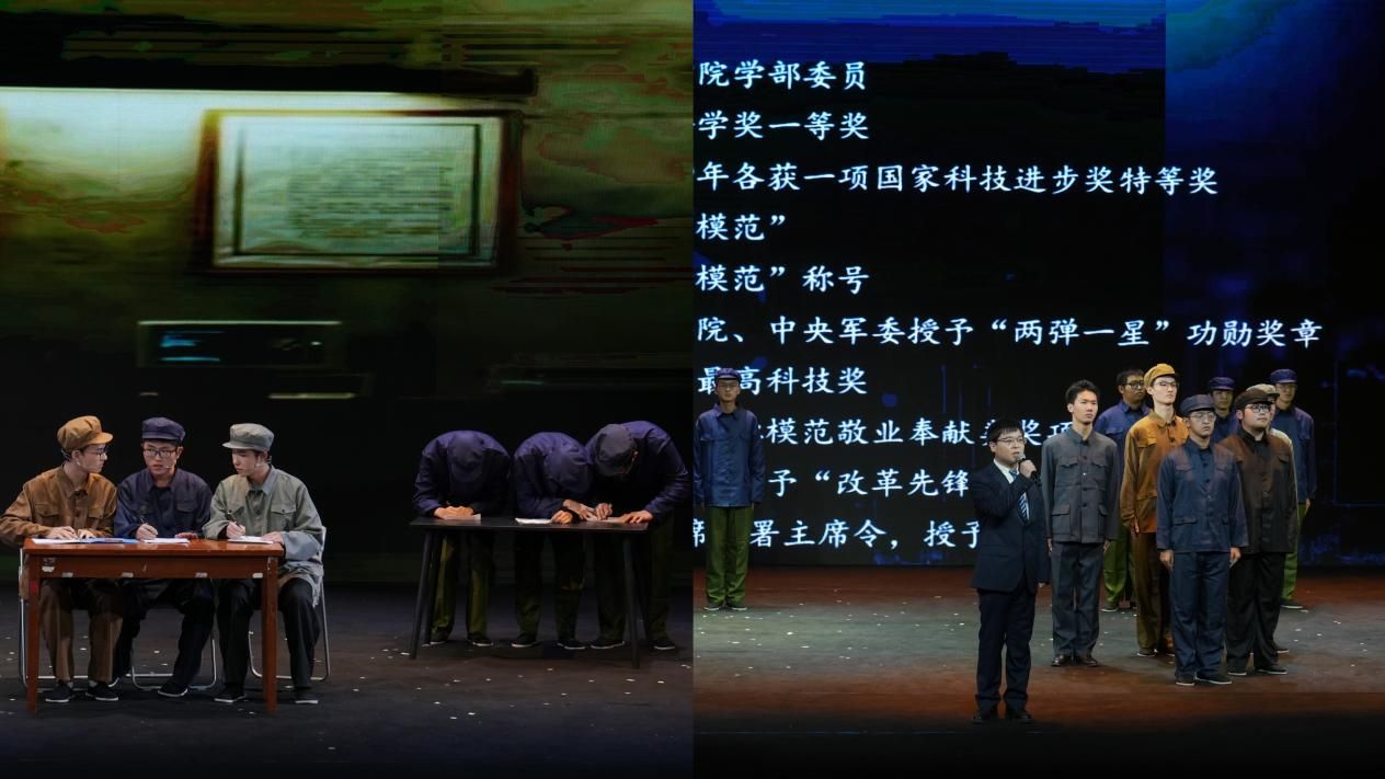 《概论》课程剧是以课程内容为基础,融合朗诵、讲述、表演等多种艺术表现方式为一体,形成主题鲜明的音画诗体裁的舞台剧。课程剧采取沉浸式的教学模式,让学生从知识走向实践、从实践走向认知、从认知走向外化,更好地反哺课堂教学,是我校开展思政课改革创新的重要举措,是“总师型”人才培养的积极尝试,是开展“大思政课”建设的生动实践。