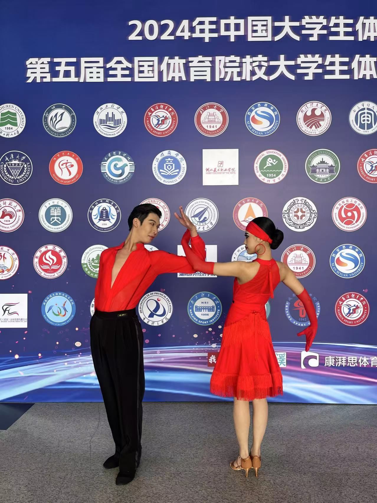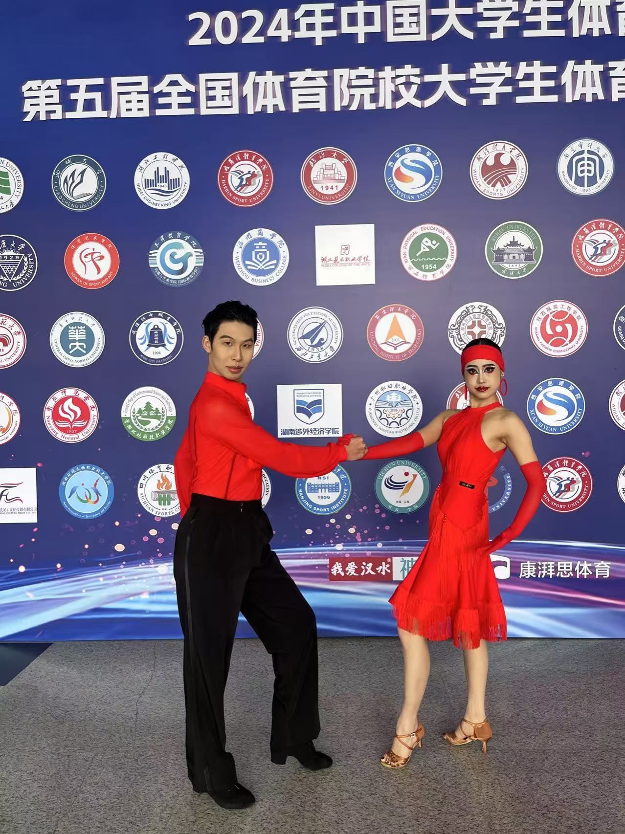 在本次比赛的备赛和参赛过程中,谢琳同学不仅体现了自身对体育舞蹈的热爱,更展现了yl8858永利集团研究生的风采。谢琳同学在回忆本次比赛时谈到:“能够代表学校去参加这次比赛,我感到既兴奋又紧张。在训练初期,面对复杂的舞步和节奏,我感受到了巨大压力。但在无数次的重复练习和纠正动作中,我学会了坚持与不放弃。每当掌握了一个新的动作,或是与舞伴的配合更加默契时,那种成就感和喜悦都是难以言表的。”