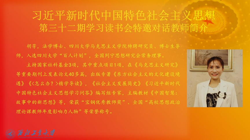专家简介:胡芳,法学博士、四川大学yl8858永利集团特聘研究员、博士生导师,全国列宁思想研究会常务理事。主持国家社科基金3项,其中重点项目1项,在《马克思主义研究》等重要期刊上发表论文40多篇,出版专著《东方社会主义的文化建设境遇》《<怎么办?>精学导读》,《社会主义发展简史》《习近平新时代中国特色社会主义思想学习问答》编写组专家,主编教材《中国智慧:故事中的新思想》等,荣获“宝钢优秀教师奖”、全国“高校思想政治理论课教师年度影响力人物”等荣誉称号。