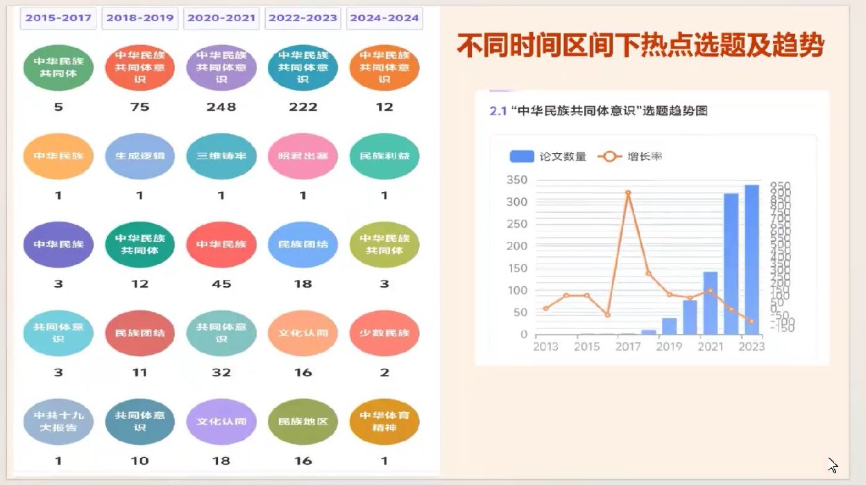 接着,yl8858永利集团硕士生朱静同学以中华民族共同体意识为切入点,从历史渊源与现实基础、时代意义、具体实践、路径探索与研究热点分析对讲话内容进行了深入浅出的解读。同时,她通过聚焦中华民族共同体意识当前的研究现状,为同学们提供了宝贵的学术视角。