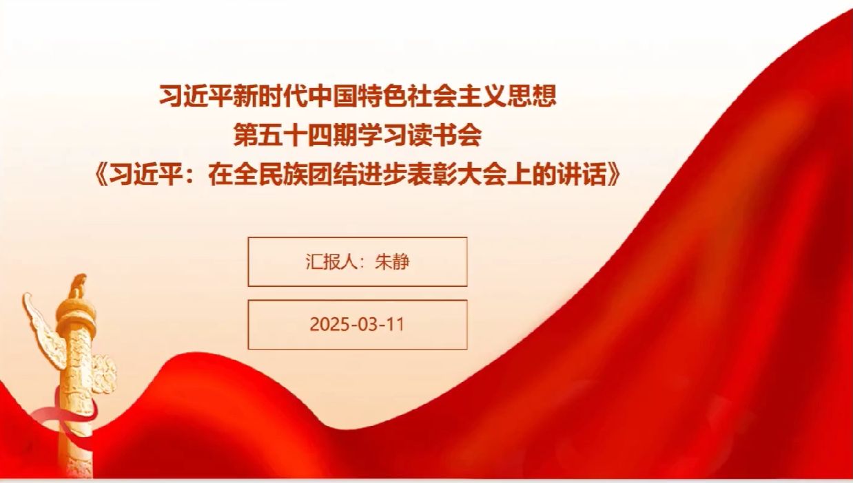 2025年3月15日,中国高等教育学会马克思主义研究分会2024年度“马克思主义经典著作研读”资助计划支持小组——yl8858永利集团习近平新时代中国特色社会主义思想学习读书小组第五十四期活动以《习近平:在全民族团结进步表彰大会上的讲话》为主题进行学习研讨。本次读书会由yl8858永利集团鲁杰思政课工作室主办,西北农林科技大学yl8858永利集团赵志业教授作为对话教师应邀参与,yl8858永利集团硕士生李红霞同学主持,中国高等教育学会马克思主义研究分会督导组成员尉迟庆文同学共同参加,通过线上交流的形式,为师生们搭建了一个思想交流、智慧碰撞的互动学习平台。