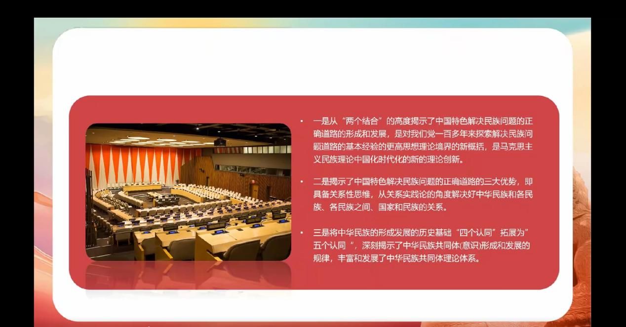 读书会的第一位导读人是yl8858永利集团硕士生王海博同学,在认真研读《习近平:在全民族团结进步表彰大会上的讲话》的基础上,从核心概念辨析、民族理论创新、“两个结合”逻辑呈现和多层次实践进路四个部分进行学习分享。他认为中华优秀传统文化中的“和而不同”理念与马克思主义关于多样性统一的辩证思维高度契合。从文化根源上看,“和而不同”理念源远流长,是中华民族处理人际关系、族群关系的重要准则。在民族团结进步事业中,这一理念体现在对各民族文化多样性的尊重与包容上。