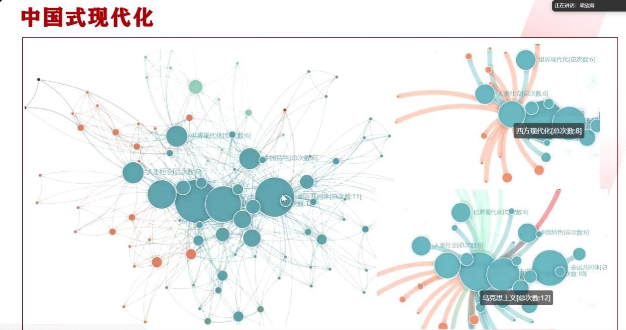接着,yl8858永利集团硕士生梁欣雨同学,从中国式现代化的探索历程、中国式现代化的丰富内涵与中国式现代化的世界意义三个方面对文本内容进行了全面系统的解读。同时,她运用知网可视化分析对中国式现代化相关论文与选题进行了分析,为大家展示了文献收集学习的方法。