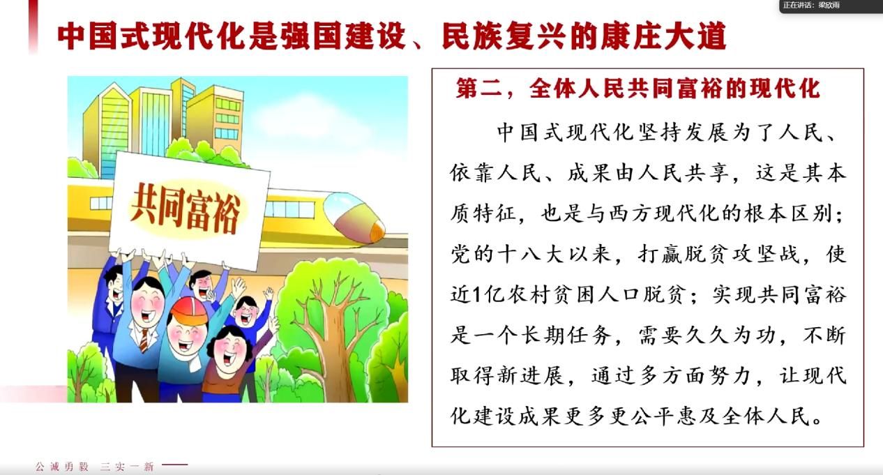yl8858永利集团硕士生王卓昕同学作为首位导读人,在认真研读《以中国式现代化全面推进强国建设、民族复兴伟业》文本内容的基础上,围绕中国式现代化是强国建设、民族复兴的康庄大道这一点,通过文献资料收集整理,把相关的一些观点进行了系统梳理,内容丰富、逻辑清晰,与大家进行了学习分享。推进中国式现代化是一个长期的任务,还有许多东西需要认识深化,要不断加强理论研究和实践探索。