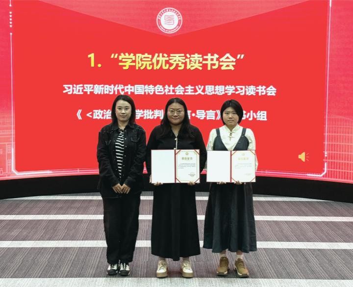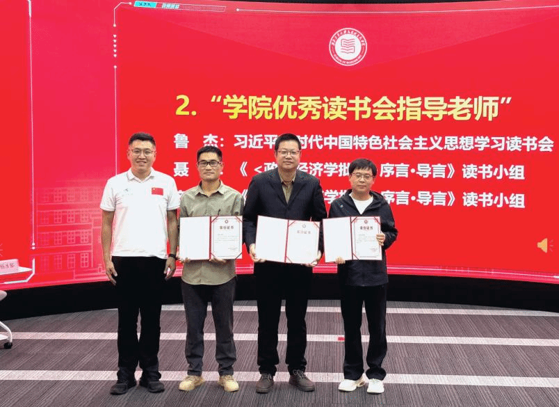 活动伊始,耿云辉为鲁杰、聂阳、齐承水颁发“学院优秀读书会指导老师”奖项。刘敏为习近平新时代中国特色社会主义思想学习读书会、《〈政治经济学批判〉序言·导言》读书小组颁发“学院优秀读书会”奖项。罗含樱、张宇作为获奖代表上台领奖。