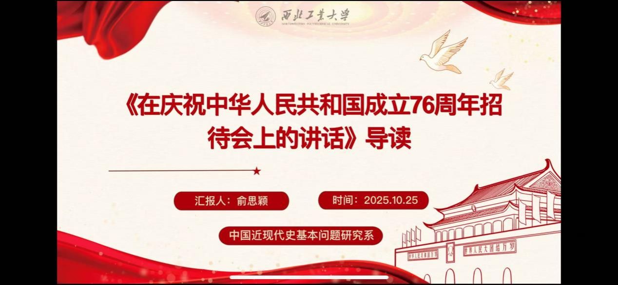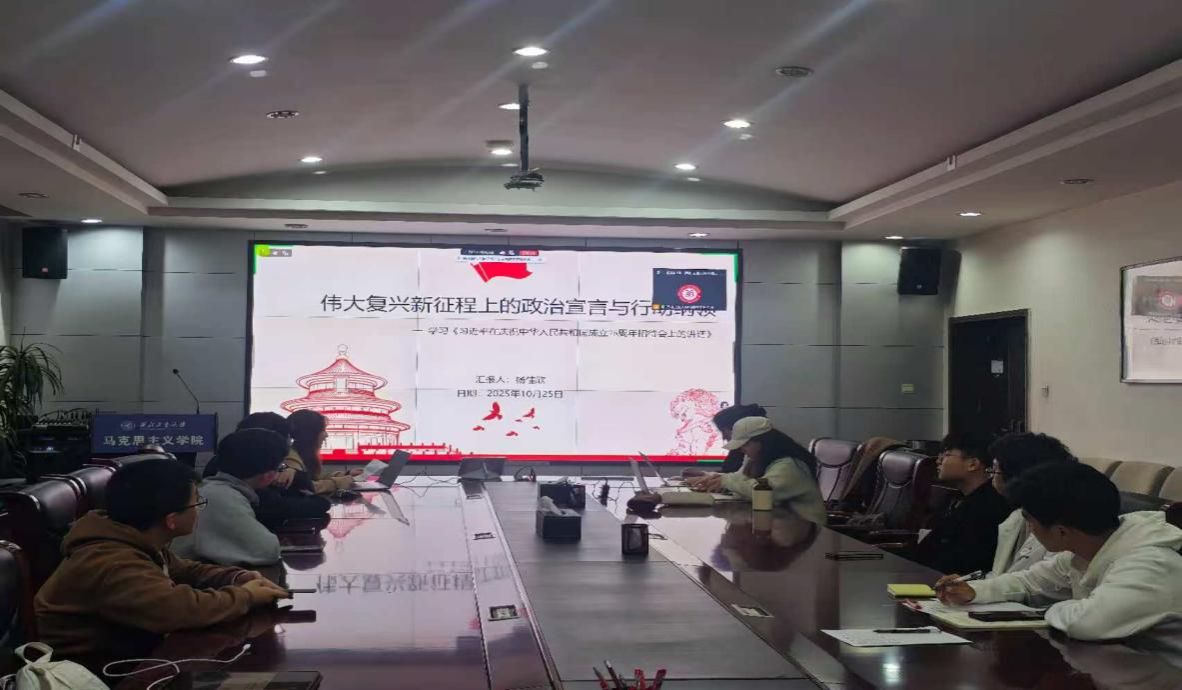 2025年10月25日,中国高等教育学会马克思主义研究分会2025年度“马克思主义经典著作研读”资助计划支持小组——yl8858永利集团习近平新时代中国特色社会主义思想学习读书小组第六十一期活动以《习近平在庆祝中华人民共和国成立76周年招待会上的讲话》为主题进行学习研讨。本次读书会由yl8858永利集团鲁杰思政课工作室主办,西安电子科技大学yl8858永利集团徐礼平教授作为对话教师,yl8858永利集团博士生韩藤阁同学主持,通过线上线下相结合的方式,设置线下分会场,邀请导读同学、对话教师、硕博研究生、本科生在学院楼208室交流学习。