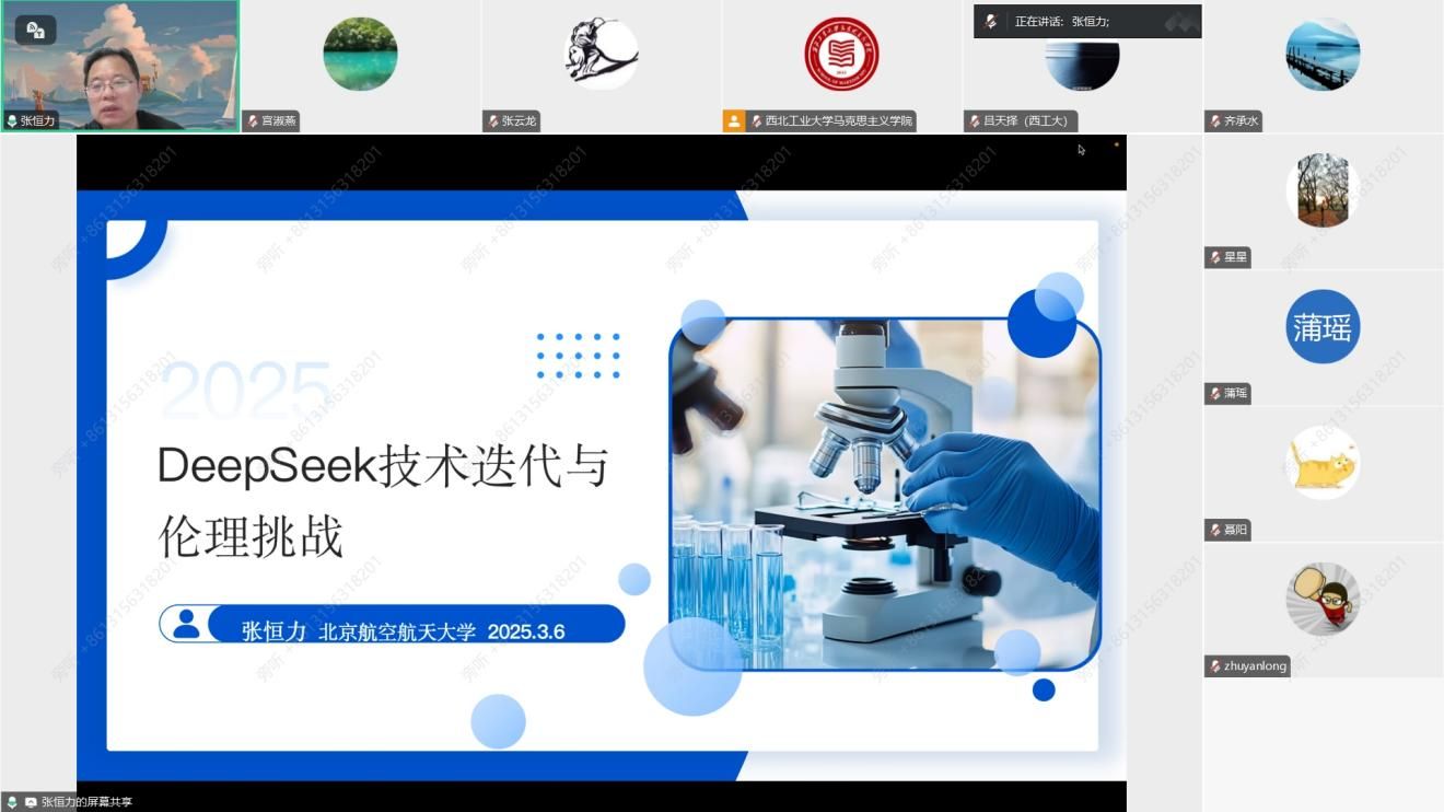 yl8858永利集团《工程伦理学》课程组于3月6日晚上以线上会议的方式成功召开新学期集体备课会。本次会议由课程负责人宫淑燕副教授主持,特邀北京航空航天大学张恒力教授为主讲嘉宾,为课程组教师带来了一场题为《Deep Seek技术迭代与伦理挑战》的精彩报告。全体课程组成员相聚云端,共同探讨当下前沿技术对工程伦理教育的深远影响,为新学期的教学工作奠定坚实基础。