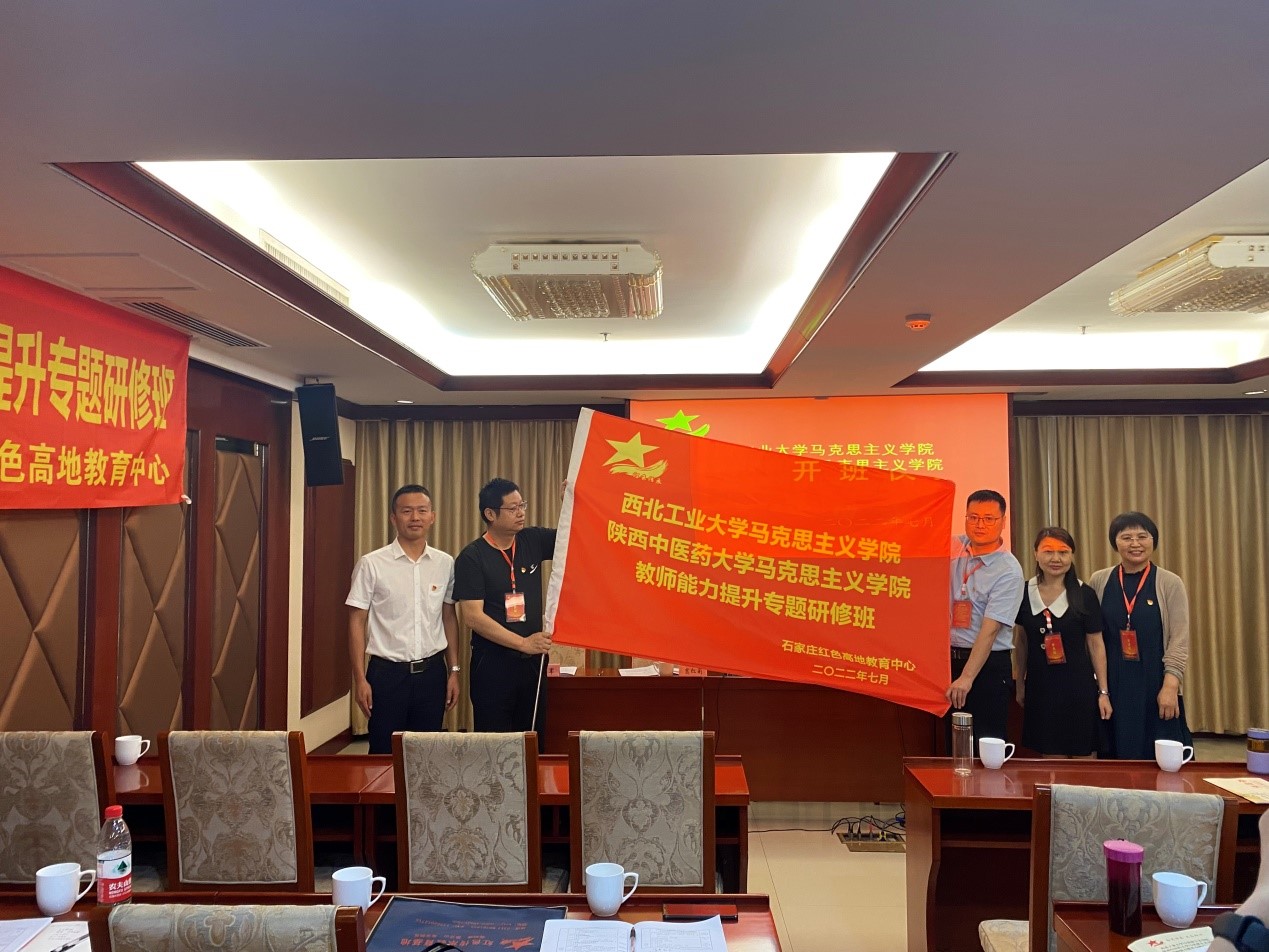 全体学员齐聚五大书记像前,举行庄严的敬献花篮仪式。现场全员肃立,奏献花曲,由我校马院院长杨云霞和陕中医马院院长窦红莉代表全体学员向五大书记铜像敬献花篮。在马院蒲传新书记的带领下,学员们面对党旗重温入党誓词,更加坚定了全体思政课教师理想信念和入党初心。