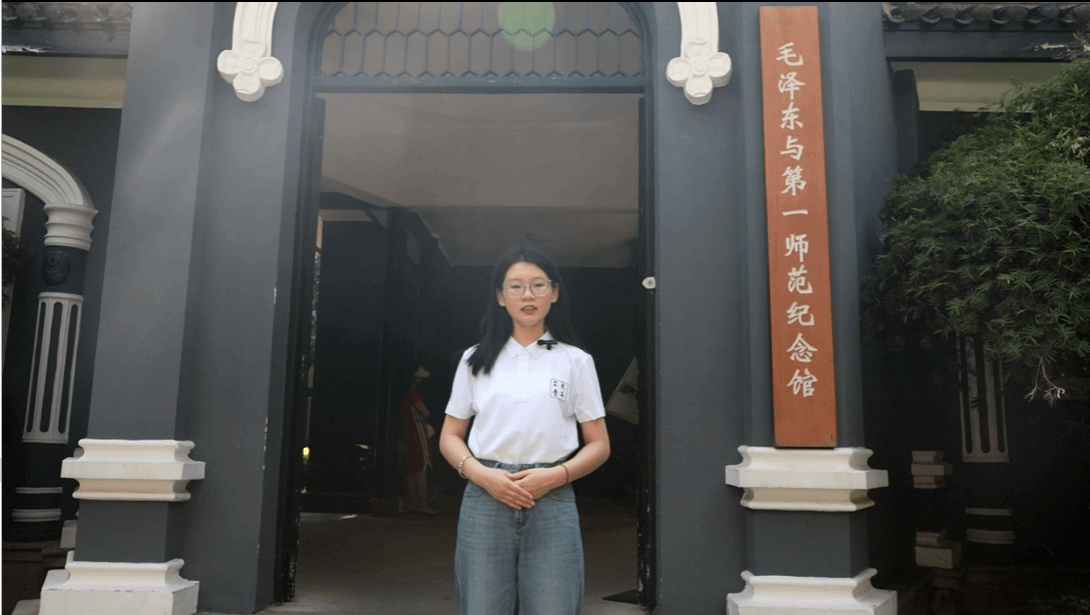 在毛泽东与第一师范旧址,王烨婷同学生动细致地为大家介绍了素有“千年学府、百年师范”美称的湖南第一师范,这里记载着毛泽东青年时代的求学生涯,也承载着中国共产党和中国革命早期发展的历史轨迹和一代有识之士探求真理的梦想。