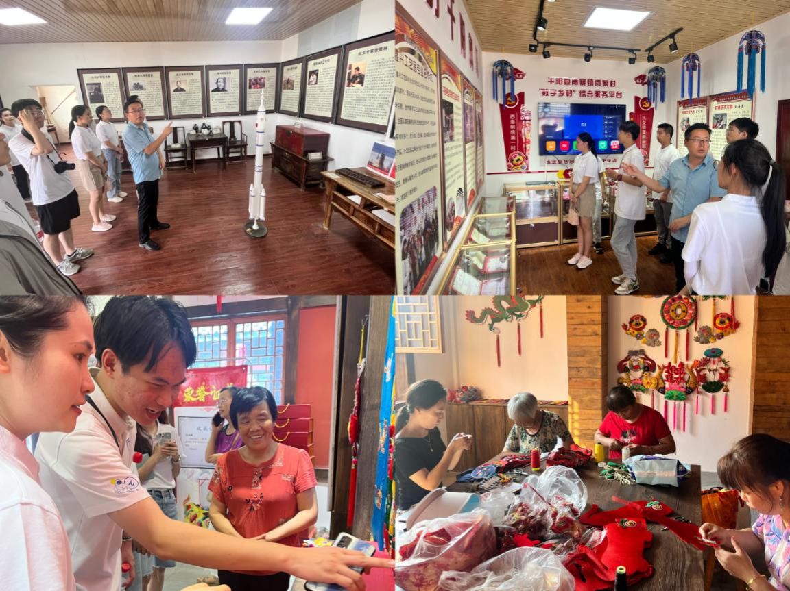 随后,实践队前往千阳县南寨镇闫家村的刺绣展览馆进一步感受刺绣文化。闫家村驻村书记王伟介绍,闫家村是千阳县重点培育的“八金八银”村。近年来,闫家村立足西秦刺绣非遗文化资源禀赋,发挥产业基础设施和绣娘人才优势,不断推进刺绣特色产业驶向高质量发展快车道。队员们还近距离观赏了绣娘们工作的场景,银针翻飞,绣线在她们的手中翩翩起舞,她们目光炯炯,时而蹙眉,时而舒展,一个个美妙绝伦的艺术品即将呈现。王伟还带领实践队员参观了闫家村的村史馆,向同学们介绍了航天专家张育林,爱民书记王书贤,创业之星李金妮等,让队员们全方位地了解这个特色突出、多维立体的村落。