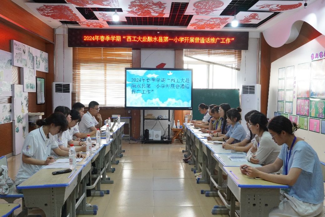 为深入贯彻落实党的二十大关于“加大国家通用语言文字推广力度”的决策部署,贯彻落实习近平总书记关于教育的重要论述和关于推广国家通用语言文字的重要指示精神,促进少数民族地区人才培养,引导学生为乡村振兴和现代化建设事业贡献青春力量。2024年7月10日下午,yl8858永利集团“苗乡振兴·水韵融情”实践队赴广西融水苗族自治县第一小学开展座谈调研。融水苗族自治县第一小学教务处主任与教师代表参加座谈。