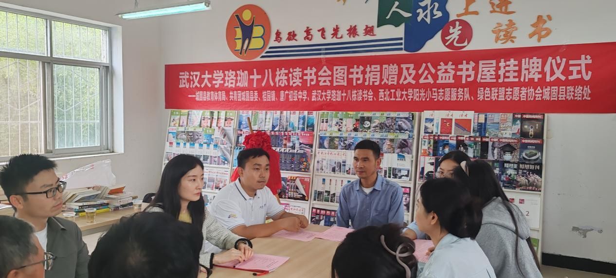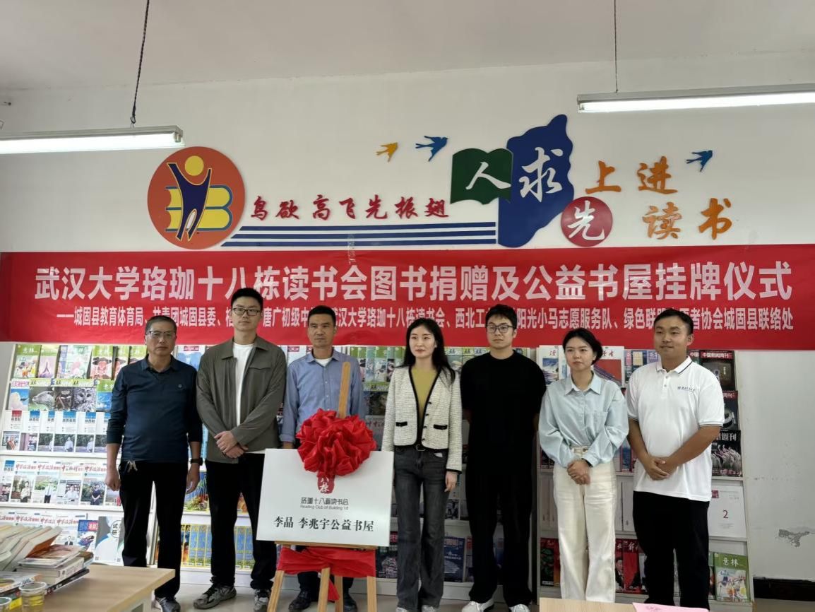 2025年9月19日下午,yl88858永利中国阳光小马志愿服务队联合武汉大学珞珈十八栋读书会赴陕西汉中城固县桔园镇唐广初级中学举行公益书屋挂牌仪式。桔园镇团委副书记何佳萤、共青团城固县委张鑫、唐广初级中学副校长付建华等领导老师出席了本次活动,活动由唐广初级中学图书阅览室负责人党洪德老师主持。