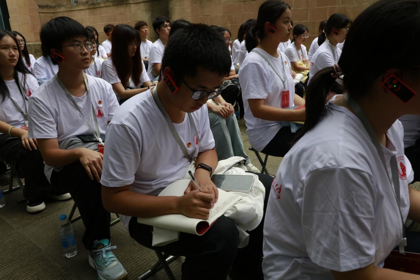 下午,实践队走进枣园革命旧址,齐声诵读《为人民服务》,学生党员在党旗下重温入党誓词,“人民至上”的理念在沉浸式学习中厚植于心。