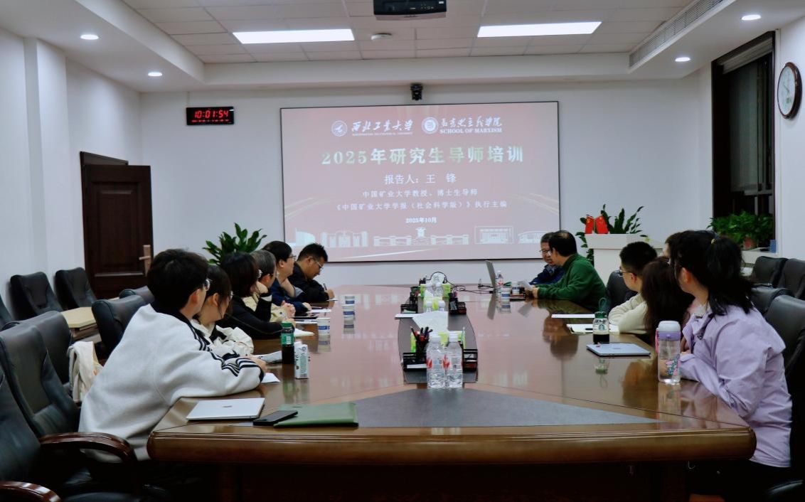 为了加强研究生导师队伍建设,全面夯实导师第一责任人职责,提升研究生导师的业务素质和指导水平,yl8858永利集团于10月17日开展2025年研究生导师培训。本次培训邀请《中国矿业大学学报(社会科学版)》执行主编王锋教授作专题报告,学院研究生导师及部分研究生参会,培训由学院副院长张云龙主持。
