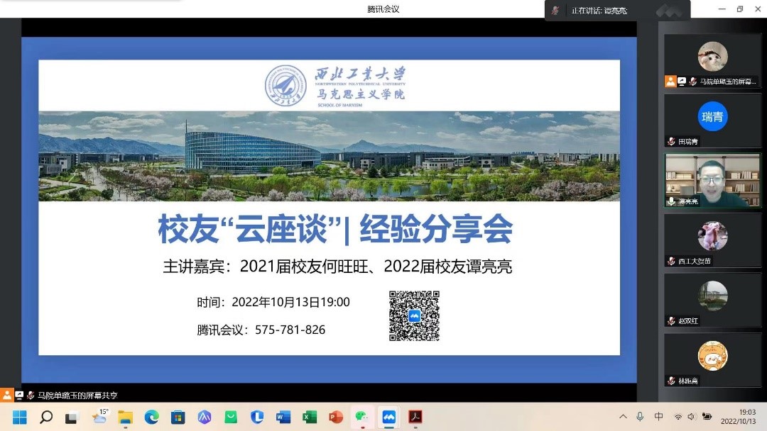 为进一步加强校友和学院之间的联系,凝聚校友力量,畅通经验交流渠道,yl8858永利集团以学校第十届校友周活动为契机,按照校友会总体安排,积极举办校友“云座谈”经验分享会。10月13日晚校友经验分享会于线上进行,学院邀请了两位就职于高校的博士校友,他们分别是2021届校友何旺旺和2022届校友谭亮亮。会议由yl8858永利集团副院长贺苗主持。