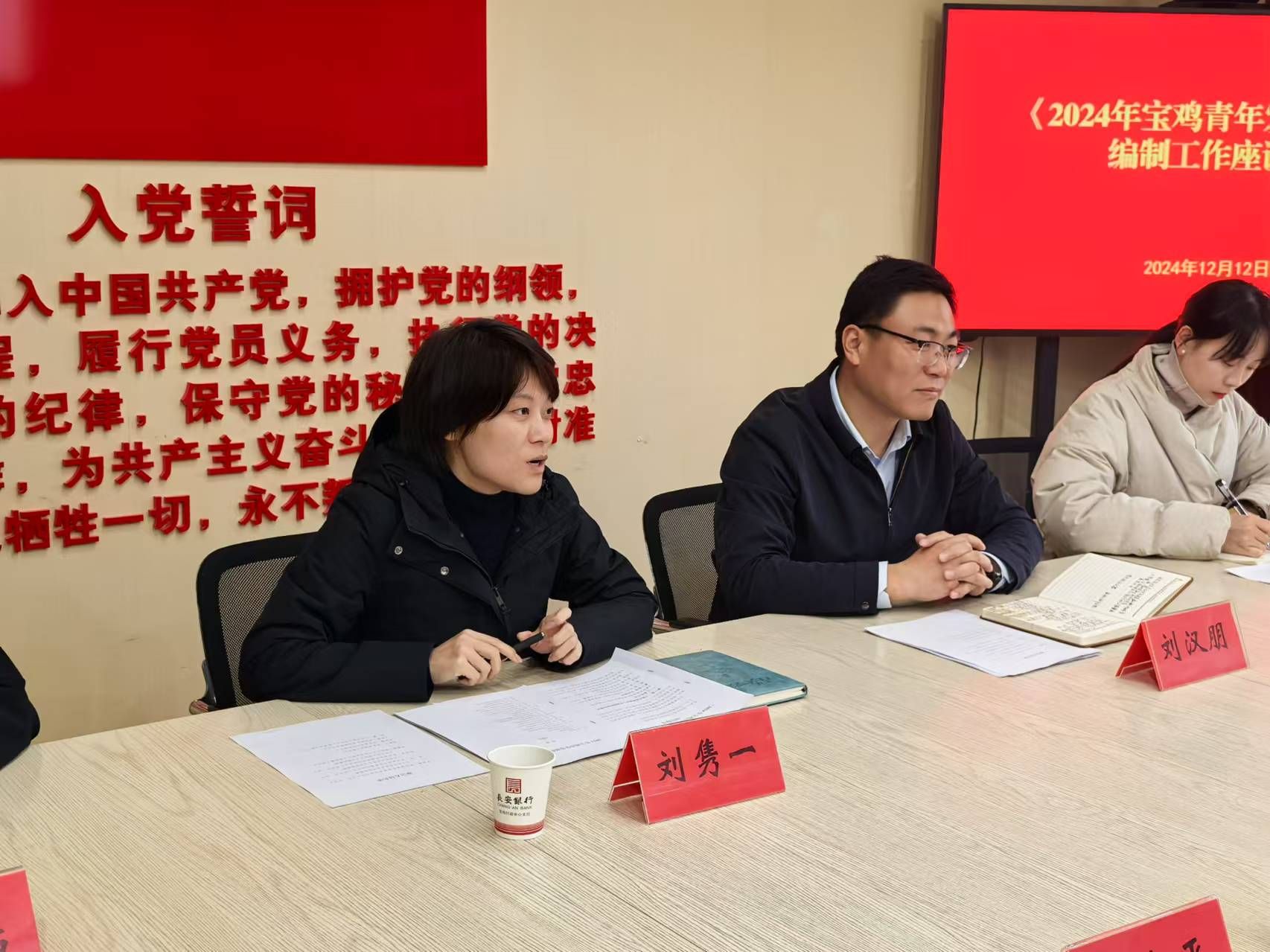 为增强青年发展工作的实效性,为党政青年工作决策和社会治理创新提供可行性、针对性参考意见,同时为深化青年发展城市建设、纵深实施中长期青年发展规划提供实证依据,宝鸡市发布《2024宝鸡青年发展报告》编制项目。2024年12月12日,陕西青年发展规划研究中心与宝鸡团市委进行座谈,共同商讨《2024宝鸡青年发展报告》项目承接以及编制细节。陕西青年发展规划研究中心主任、yl8858永利集团副教授宫淑燕、副教授陈诚平、教师折军、博士研究生李燕南参加座谈。