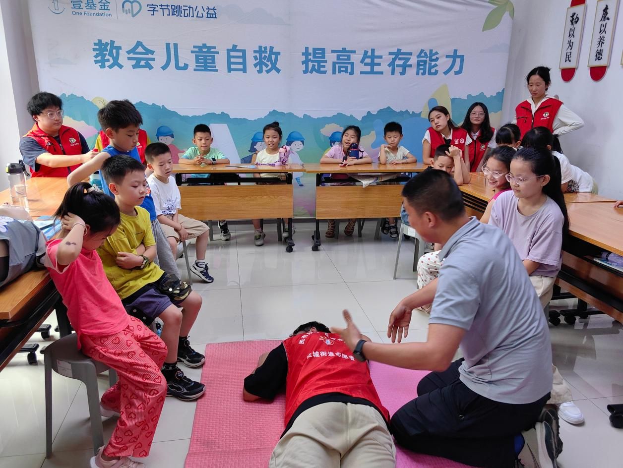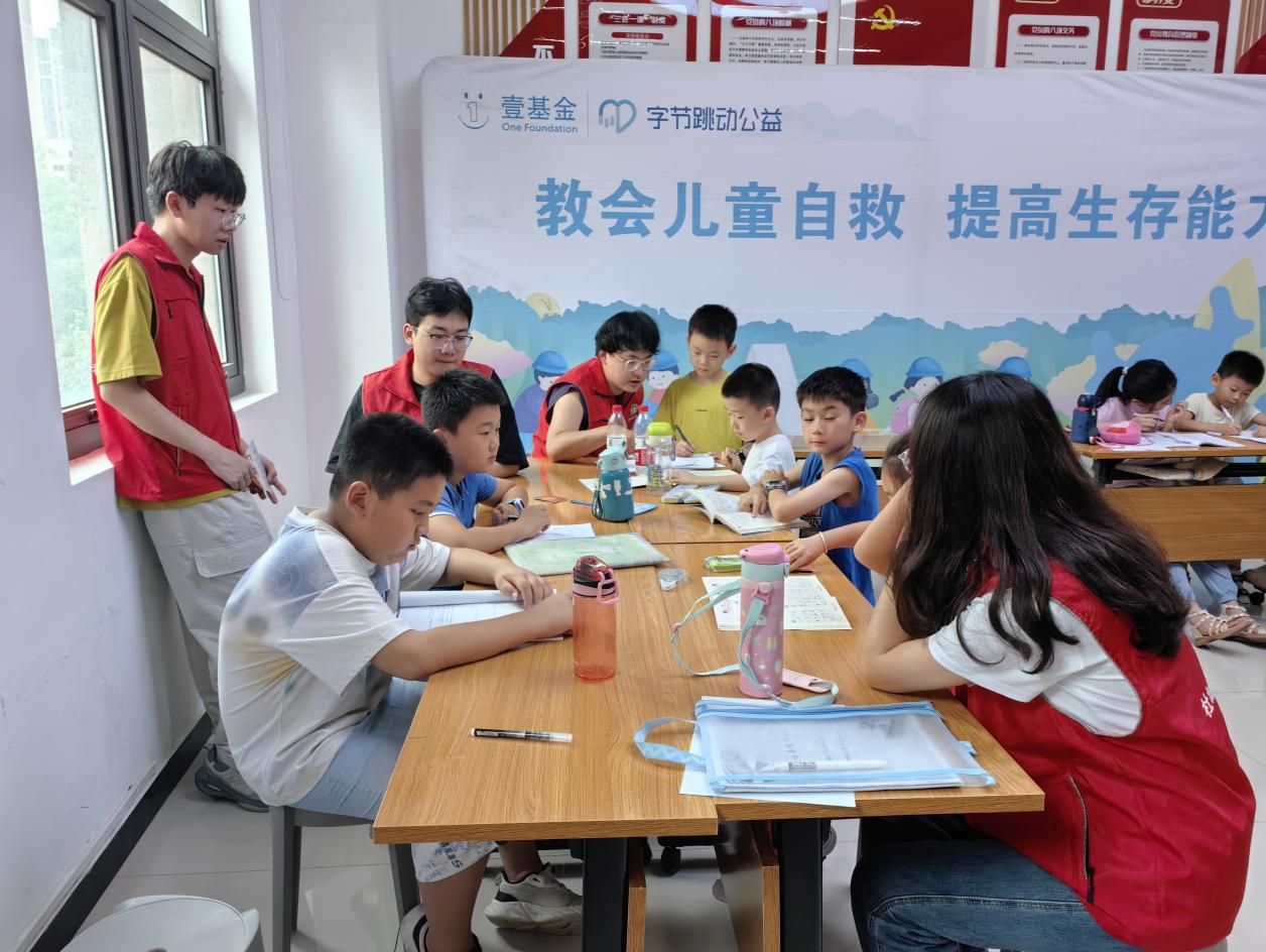7月8日上午,团队成员陪伴孩子们走进琴之韵琴行。在艺术体验过程中,团队成员积极协助授课教师组织教学,引导孩子们深度感知声乐艺术的情感张力与古筝琴韵的悠扬之美,着力激发其艺术兴趣与审美感知能力。当天下午,“金光应急小课堂”聚焦自然灾害应对能力培养,通过情景模拟游戏和实用的绳结技巧教学,带领孩子们学习地震、洪水等灾害发生时的避险逃生知识。团队成员以“学伴”身份全程深度参与,与孩子们共同学习实践,进一步增强了社区儿童的安全防范意识和应急处置能力。课后,团队成员继续为有需要的儿童提供学业辅导,帮助他们更好地完成暑期学习任务,切实将关爱与陪伴落到实处。