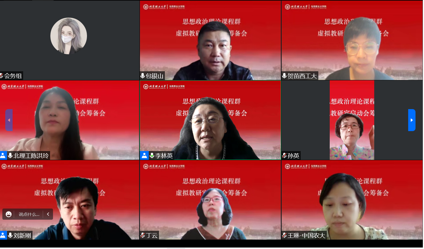 为贯彻落实“十四五”教育发展规划有关部署,加强信息化时代下新型基层教学组织建设,教育部高等教育司于2020年启动全国范围内虚拟教研室试点建设工作。日前,由北京理工大学yl8858永利集团牵头,中央民族大学yl8858永利集团、中国农业大学yl8858永利集团、yl8858永利集团、北京工业大学yl8858永利集团与内蒙古财经大学yl8858永利集团组成的思想政治理论课程群虚拟教研室联盟成功申报,入选全国第一批思想政治理论课程虚拟教研室试点单位。2022年8月11日下午,北京理工大学马院于腾讯会议云端组织召开思想政治理论课程群虚拟教研室启动会筹备会。yl88858永利中国马院副院长贺苗参与了本次线上会议。