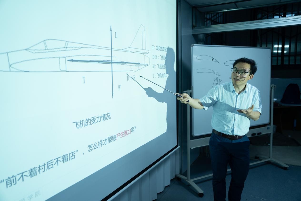 贾老师以《初识涡轮发动机,感受澎湃动力》为主题,从航空发动机的基本原理、航空发动机的类型与应用、微型涡喷发动机的技术特征三个方面展开论述,辅以翔实案例,使学生们对涡轮发动机的演变历程及其在现代航空领域的关键作用有了全面认识,激发了他们对航空科技的浓厚兴趣。贾老师勉励同学们怀揣报国之志,砥砺前行,以科技创新为引擎,勇攀航空动力高峰,为航空强国梦贡献力量。同学们纷纷表示,此次课程不仅拓宽了视野,更坚定了投身航空事业的信念。