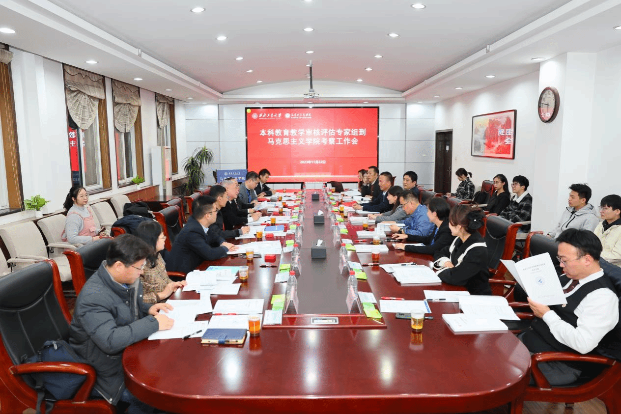 On the afternoon of 23rd November 2023, members of the expert group of undergraduate education teaching audit and evaluation of the Ministry of Education, Wang Xiaofeng, former vice president of Beijing University of Technology, Dang Yuewu, director of the Academic Affairs Office of Sichuan University, and Li Fuqiang, head of the Teaching Assessment Section of Nanjing University of Posts and Telecommunications, and other members of the group went to the School of Marxism for guidance and to carry out a discussion, to learn about the ideological and political theory course construction of the School of Marxism. Leaders of relevant departments of the university, members of the leadership team of the School of Marxism, and representatives of teachers and undergraduates of each department attended the research.